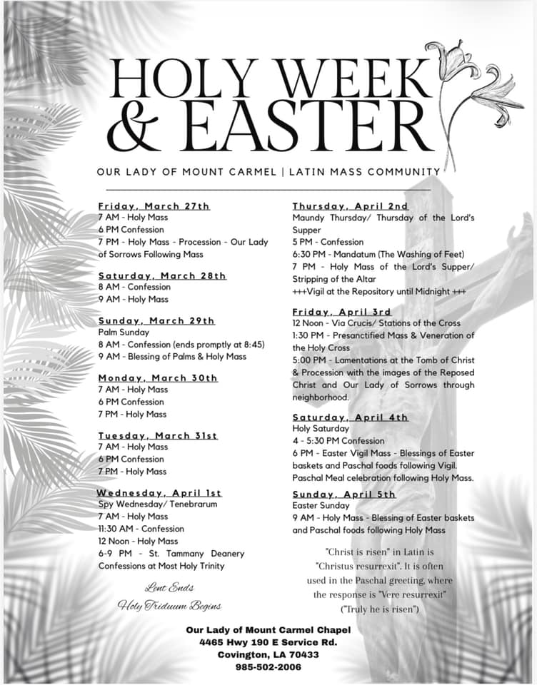 With all glory to God, we are continuing the Traditional Latin Mass on Louisiana’s Northshore with the blessing of the Archdiocese.
